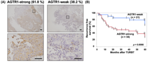 - 血圧調整を行う「AGTR1」という受容体が多いほど、膀胱がんが進行しやすく再発しやすいことを発見しました。