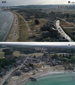 図2. 珠洲市鵜飼と能登町白丸における津波被害の写真