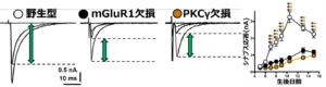 さらに、発達期のマウスの小脳スライス標本を用いた実験から、「勝者」の登上線維シナプスでは、mGluR1とPKCγに依存した「長期増強(LTP)」が生じていることを突き止めました。